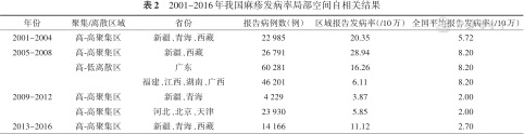 | 2001-2004 | 高-高聚集区 | 新疆、青海、西藏 | 22 985 | 20.35 | 5.72 |