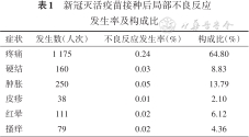 新冠灭活疫苗接种后局部不良反应发生率及构成比