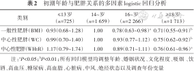 初潮年龄与肥胖关系的多因素logistic回归分析
