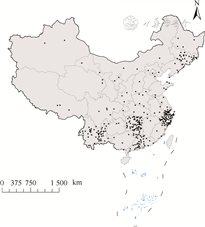 1. 研究地点:本研究选取全国364个区(县)作为研究点。选取标准是区(县)总人口数>20万,或年死亡率>4‰。地理分布见图1。