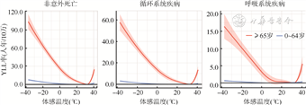 | 体感温度阈值(℃) | 日均归因YLL | 体感温度阈值(℃) | 日均归因YLL | 体感温度阈值(℃) | 日均归因YLL | ||