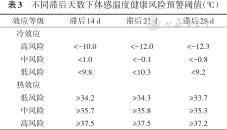 5. 敏感性分析:改变DLNM模型中不同的滞后天数,对各健康风险等级的预警阈值的影响较小(表3),结果相对稳定。