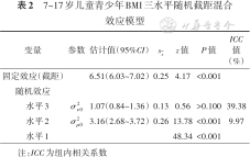 7~17岁儿童青少年BMI三水平随机截距混合效应模型
