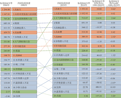 再以1990年为对照组,分别计算1991-2019年归因于各因素的DALY变化值,并应用R软件(R 4.0.3)对其进行Cox.stuart趋势性检验,以P<0.05为差异有统计学意义。