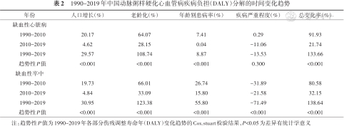 1990-2019年中国动脉粥样硬化心血管病疾病负担(DALY)分解的时间变化趋势