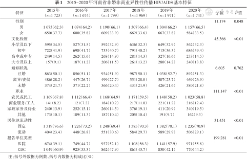2015-2020年河南省非婚非商业异性性传播HIV/AIDS基本特征