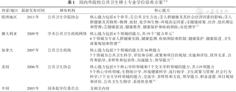 1.能力培养:随着医学模式的转变,公共卫生领域面临着越来越严峻和复杂的挑战,人们对公共卫生应用型人才需求急剧增加。为了加强公共卫生系统和MPH专业学位研究生能力建设,欧洲地区、澳大利亚、加拿大、美国和中国发布了MPH专业学位培养方案。
