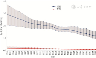 1. 资料来源:来源于GBD2019中国分省研究结果。GBD2019利用统一、可比的方法全面分析和估计了1990-2019年全球204个国家和地区的369种疾病或伤害的疾病负担,同时对87种危险因素的归因疾病负担进行了系统梳理[3, 4]。我国在GBD中采用的死因数据主要来自中国疾病监测系统、中国妇幼卫生监测网和中国疾病预防控制中心死因报告等;危险因素数据主要来自慢性病与危险因素监测、国家健康和营养调查、系统综述和Meta分析等[3, 4, 5, 6]。