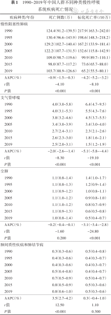 1990-2019年中国人群不同种类慢性呼吸系统疾病死亡情况