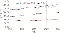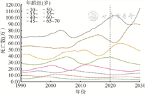 | 年龄组(岁) | 1990年 | 2015年 | 2020年 | 2030年 |