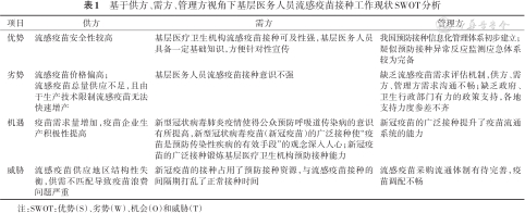 基于供方、需方、管理方视角下基层医务人员流感疫苗接种工作现状SWOT分析