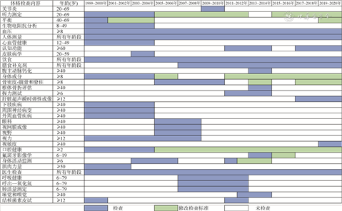 体格检查项目每年会有变化,1999-2020年的体格检查项目情况见图3[15]。老年调查对象所需检测的项目比年轻人多。