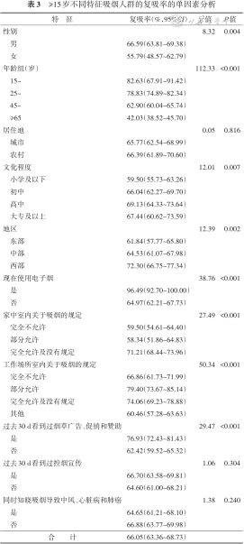 ≥15岁不同特征吸烟人群的复吸率的单因素分析