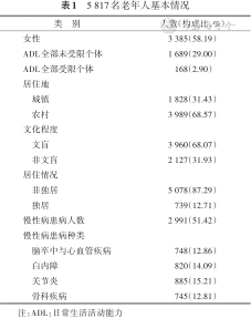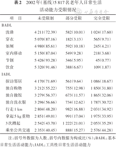 2002年(基线)5 817名老年人日常生活活动能力受限情况