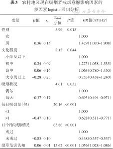 农村地区现在吸烟者戒烟意愿影响因素的多因素logistic回归分析