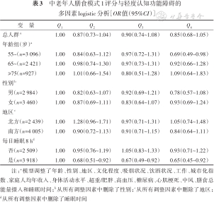 中老年人膳食模式1评分与轻度认知功能障碍的多因素logistic分析[OR值(95%CI)]