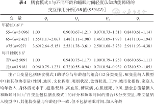 膳食模式1与不同年龄和睡眠时间轻度认知功能障碍的交互作用分析[OR值(95%CI)]