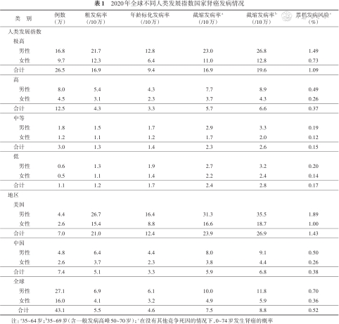 胡明, 范君言, 周雄, 等. 2020年全球肾癌发病与死亡分析[J]. 中华流行病学杂志, 2023, 44(4): 575-580. DOI: 10.3760/cma.j.cn112338-20220624-00558.
