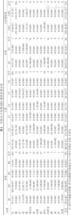 中国15个民族HBV基因分型概况与HBV基因型分布