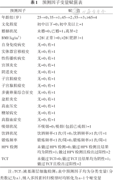 注:TCT:液基薄层细胞检测;表中预测因子均为分类变量(分类数记为n),纳入多因素回归模型时均转化为n-1个哑变量