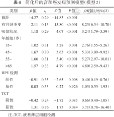 | 有宫颈炎史 | 2.11 | 0.13 | 15.80 | <0.001 | 8.23(6.34~10.70) |