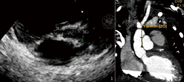 术后第4天延迟关胸。呼吸机辅助114.8 h,住重症监护室5天。予以全胃肠外营养、呼吸机支持,同时应用多巴胺、肾上腺素维护心功能。术后16天复查超声心动图示:肺动脉瓣轻度反流,主动脉-肺动脉吻合口无梗阻,心房水平双向分流,管道瓣膜轻度反流。心脏CT 、三维重建示升主动脉与肺总动脉吻合口直径约11.8 cm。(图2)。