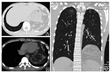 文献报道皮质类同醇类药物可用来治疗胸腺增生[8],但对巨大胸腺增生效果不明显,故本例并未采用激素治疗。