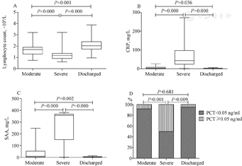 探讨淋巴细胞计数、C反应蛋白(C reactive protein, CRP)、血清淀粉样蛋白A(serum amyloid A protein,SAA)、降钙素原(procalcitonin,PCT)等炎症指标在新型冠状病毒肺炎(COVID-19)患者诊疗中的临床价值。