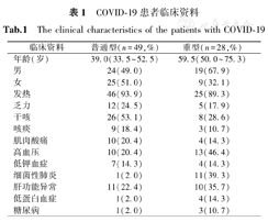 患者典型的症状包括发热、干咳、乏力、咳痰、肌肉酸痛等;普通型患者的年龄分布明显低于重型患者(P<0.001)。患者的临床资料详见表1。
