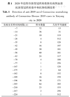 2020年信阳市新型冠状病毒肺炎病例血清抗新型冠状病毒中和抗体检测结果
