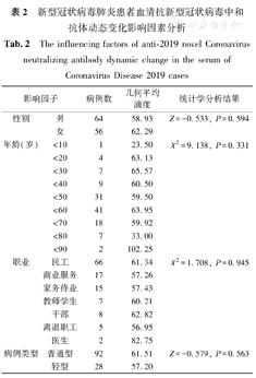 新型冠状病毒肺炎患者血清抗新型冠状病毒中和抗体动态变化影响因素分析