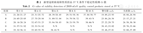 Ct value of stability detection of 2019-nCoV quality control products stored at 37 ℃