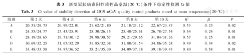 新型冠状病毒阳性质控品4 ℃条件下稳定性检测Ct值