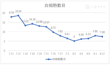 血常规(2022年8月12日):红细胞2.54×1012/L,白细胞7.39×109/L,血红蛋白69 g/L,血小板265×109/L,中性粒细胞数目6.681×109/L,中性粒细胞占比0.904(图1、图2)。