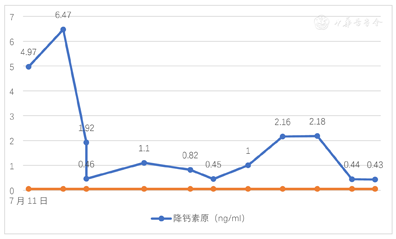PCT(2022年8月10日):0.43 ng/ml(图3)。肝素结合蛋白(2022年8月10日):4.67 ng/ml。CRP(2022年8月10日):31.8 mg/L。
