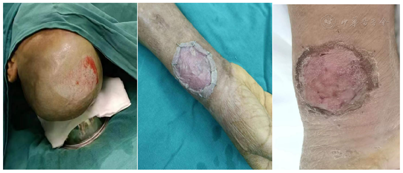 院外已拔除颈内静脉导管,本院再次行右颈内静脉置管,行床旁CRRT治疗清除炎症介质,予万古霉素抗感染治疗;后降阶梯调整为哌拉西林,感染控制后予右前臂动静脉内瘘破溃处清创负压吸引,行自体头部皮肤移植治疗。