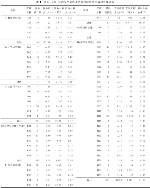 2000—2021年西安交大医工结合领域资助学部和学科分布