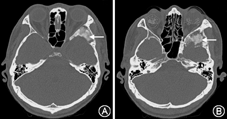 患者男性,32岁,因间断性头痛4个月,加重伴发热、恶心1周入院。患者于4个月前无明显诱因出现头痛,阵发性发作,呈胀痛,以后枕部明显,1周前发热,体温最高达38.5 ℃,头痛较前明显加重,伴恶心,未呕吐,头痛与发热无相关性。伴大汗,腰痛,行头颅MRI提示左侧前中颅窝底及邻近颞窝区占位性病变,为明确诊治入我院神经肿瘤外科。病程中无寒战,无肢体活动不灵。既往体健。有羊接触史(现家中养羊)。入院时体检:体温38 ℃,呼吸20次/min,脉搏85次/min,血压110/70 mmHg(1 mmHg=0.133 kPa),一般状态差,双侧瞳孔等大同圆,直接对光反射灵敏,视力正常,心肺腹体检未见异常。肌力肌张力正常,脑膜刺激征阴性,余神经系统体检未见明显异常。辅助检查:血常规:白细胞14.22×109/L,中性粒细胞0.89,中性粒细胞绝对值12.63×109/L。红细胞沉降率23 mm/h。头颅MRI平扫加增强(图1)示:左侧前中颅窝底及邻近颞窝区见团片样异常信号,T1WI呈较低信号,T2WI呈稍高、稍低信号,FLAIR呈稍高信号,大小约2.2 cm×4.5 cm×2.3 cm,边界不清,增强呈不均匀中等程度强化,病变与左侧眶外侧壁、蝶骨左翼及左侧视神经管起始部分分界不清,病变部分向颅内突入,与左侧颞极分界欠清。左侧前中颅窝底及邻近颞窝区占位性病变。头颅CT(图2)示:蝶骨体及蝶骨左翼形态饱满且不规整,局部骨皮质不连续,其内密度弥漫性不均匀,可见不规则高密度影及散在钙化影。腰椎穿刺压力250 cmH2O (1 cmH2O=0.098 kPa)。脑脊液常规检查:蛋白1.15 g/L,葡萄糖1.1 mmol/L,氯化物108.5 mmol/L,潘迪反应(+),白细胞453×106/L,多核细胞0.42,单核细胞0.58。脑脊液墨汁染色,结核分枝杆菌抗体、培养均为阴性。肝功能、肾功能、尿常规检查正常,肺CT未见异常。