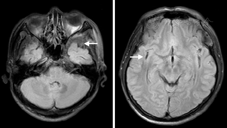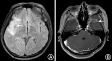 布氏杆菌是一种革兰阴性杆菌,为细胞内寄生菌,易感染牛、羊、猪等家畜,常接触病畜或食用病畜未经消毒的肉、奶制品的人群为高危发病群体。该菌多经皮肤、黏膜、消化道或呼吸道传染,流行病学对诊断布氏杆菌病尤其重要[2]。布氏杆菌感染急性期多表现为发热伴大汗、关节痛、肝脾肿大等,如不及时诊治可转为慢性,侵犯多个系统,常引起脊柱关节破坏、心内膜炎、睾丸炎等[3]。但该病累及神经系统较为罕见,可致脑膜炎、脑膜脑炎、周围神经炎、脱髓鞘等[4]。布氏杆菌引起的中枢神经损害机制目前尚不明确,可能与其释放的内毒素或感染后诱发的免疫反应有关。