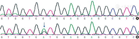 患者出院后未予任何治疗,无力症状轻重程度相差较大,休息及天气暖和时好转,紧张及天气寒冷时加重。2014年3月再次入住我科。体检基本同上次住院。复查肌电图示神经传导测定可见R-CMAP波,低频重复刺激后消失(图1)。送外周血标本行CMS相关基因检测。检测结果示:COLQ基因(NM_080539)外显子中存在1个错义突变:C.175C>T(p.Pro59Ser),为杂合突变(图2),测序深度50/44(0.47)。经文献复习[2],该突变与终板乙酰胆碱酯酶缺乏症相关。同时,对患者父母进行该位点检测,患者父亲存在相同杂合突变,但不存在无力表现。取得患者知情同意后给予特布他林2.5 mg 2次/d治疗,患者自觉无力好转并出院。出院后继续服用特布他林3个月,活动耐量较前好转,后自行停用。目前随诊中。