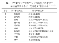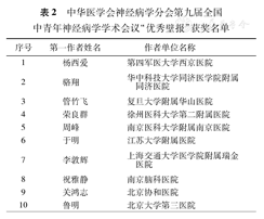 中华医学会神经病学分会第九届全国中青年神经病学学术会议"优秀论文"获奖名单