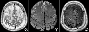 本文HLD患者颅脑MRI表现为相对非典型的双侧额、顶、颞叶脑沟变窄,脑组织肿胀,呈稍长T1稍长T2信号,弥散加权成像呈脑回样高信号,增强提示双侧额顶叶脑回线样明显强化以及HLD典型的表现如双侧豆状核、丘脑及外囊、胼胝体、脑干背侧呈片状稍长T1稍长T2信号。脑回线样强化与血脑屏障破坏有关,且脑实质表面强化通常系血管性疾病或炎症性疾病所致[7]。患者有HLD罕见的癫痫发作[8],癫痫所致血管舒张也可导致脑回线样强化。结合国外1例额叶脑回线样强化伴有癫痫发作的HLD患者在抗癫痫治疗1个月后,癫痫症状和脑回线样强化消失,然而额叶皮质下白质影像学改变仍存在且范围相对更大[9],可以推测脑回线样强化与癫痫发作相关,可能是癫痫发作导致脑回线样强化,加剧了脑白质病变。相关研究还发现[8],HLD患者中有癫痫发作者比无发作者有更多的脑白质病变,特别是额叶皮质下病变与癫痫发作呈显著相关。且提示未干预控制的HLD患者癫痫发作,MRI上可能出现脑白质空泡。癫痫发作不是HLD患者常见表现,其往往合并有广泛白质病变[10,11]。目前癫痫与皮质下白质损害因果关系暂不明确。由于HLD影像学存在多样性,诊断应该拓宽思路,还需结合临床病史,及其余辅助检查。