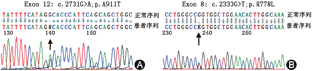 在患者及其家属的知情同意下,对患者进行基因检测。在该患者ATP7B基因12号外显子(图3A)检测到错义变异c.2731G>A;p.A911T(杂合),据目前文献和数据库检索,暂不明确是否具有病理意义。在8号外显子(图3B)检测到错义突变c.2333G>T; p.R778L(杂合),为文献报道过的病理性突变位点。