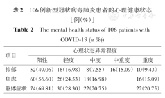 106例新型冠状病毒肺炎患者的心理健康状态[例(%)]