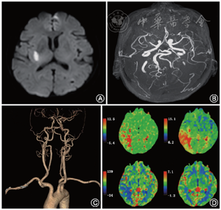 患者女性,61岁,主因“左侧肢体无力伴言语不清2 h”于2019年12月25日就诊于北京天坛医院神经内科急诊。患者平素体健,否认高血压、冠心病、糖尿病、心房颤动、心脏瓣膜病等病史,就诊时血压165/110 mmHg(1 mmHg=0.133 kPa)。患者初诊时NIHSS评分为10分,完善头颅CT平扫未见出血,于发病后3.5 h接受了重组组织纤溶酶原激活剂静脉溶栓,溶栓后2 h NIHSS评分6分。患者急诊心电图未见明显异常,住院期间完善入院常规实验室检查,低密度脂蛋白胆固醇(low-density lipoprotein cholesterol,LDL-C)3.21 mmol/L,总胆固醇6.16 mmol/L,空腹血糖5.94 mmol/L,糖化血红蛋白5.6%。患者在院期间完善头颅MRI结构影像学检查提示右侧脑室体部旁、放射冠及基底节区超急性期梗死灶(图1A);完善头颅MRA和CTA检查进行血管评价提示右侧大脑中动脉水平段存在重度狭窄(图1B、C);脑CT灌注成像(computed tomography perfusion)检查进行血流动力学评价提示右颞顶片状区域低灌注改变(图1D)。患者超声心动图及动态心电图未见明显异常。对于该患者,应如何制定二级预防策略,以降低卒中复发风险?