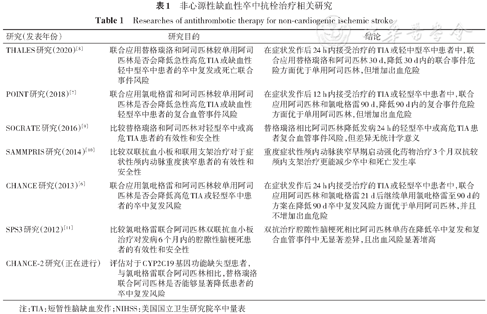 Researches of antithrombotic therapy for non‑cardiogenic ischemic stroke