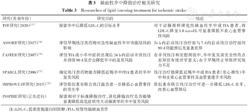 | TST研究(2020)[27] | 探索卒中后降低LDL‑C的目标水平 | 对于动脉粥样硬化性缺血性卒中或TIA患者,将LDL‑C降至1.8 mmol/L可显著降低不良心血管事件风险 |