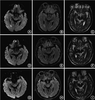 临床资料 患者男性,64岁,主因“发热、头痛、意识障碍16 h”于2019年2月9日收入东南大学附属盐城医院神经内科。患者入院16 h前无明显诱因出现发热,自服退热药物及头孢类抗生素,入院3 h前出现头痛、恶心、呕吐、烦躁不安。既往有长期饮酒史(白酒250 g/d,共30余年),一直从事养猪工作,发病前1周手部皮肤被利器损伤,伤口长约3 cm,未诊治。入院体格检查:体温38.0 ℃,心率100 次/min,血压112/68 mmHg(1 mmHg=0.133 kPa),意识模糊,反应迟钝,体格检查欠合作,左手背部伤口已结痂,双侧鼻唇沟对称,四肢肌力Ⅴ级,右侧巴宾斯基征阳性,颈抵抗,颏胸2指,克尼格征阳性。辅助检查:头胸腹部CT检查示大脑纵裂池密度稍高,胆囊炎,两肺肺气肿;血常规:白细胞14.92×109/L,中性粒细胞百分比93.3%(正常值50%~70%),淋巴细胞百分比2.3%(正常值20%~40%),超敏C反应蛋白81.84 mg/L(正常值0~10 mg/L);血清葡萄糖7.38 mmol/L(正常值3.6~5.8 mmol/L);血糖、电解质、肝肾功能、甲状腺功能、自身抗体、抗中性粒细胞胞质抗体、补体免疫球蛋白、肿瘤指标、肝炎指标、梅毒抗体、人类免疫缺陷病毒抗体均无明显异常。血培养阴性;头颅磁共振成像(MRI)示双侧侧脑室枕角信号异常,考虑感染所致可能大(图1A~C)。脑脊液检查:脑脊液压力280 mmH2O(1 mmH2O=0.009 8 kPa);脑脊液常规:混浊、潘氏试验阳性;白细胞3 522×106/L, 多个核细胞92%,单个核细胞8%;脑脊液生化:总蛋白>3.0 g/L(正常值0.12~0.60 g/L), 葡萄糖<1.00 mmol/L(正常值2.5~4.5 mmol/L), 氯化物109.56 mmol/L(正常值120~132 mmol/L;表1);革兰染色、抗酸染色、墨汁染色、肺炎链球菌抗原、单纯疱疹病毒-DNA及结核DNA均阴性。脑电图:边缘状态脑电图。心电图:窦性心动过速。入院诊断:化脓性脑膜炎。入院当天开始给予青霉素(600万单位静脉滴注,每6小时1次)抗菌、甘露醇脱水降颅压、地塞米松磷酸钠(10 mg静脉滴注,1次/d)抑制免疫反应等治疗。入院第3天患者体温恢复正常,意识转清,脑脊液血平板上过夜培养后见圆形凸起、表面光滑湿润、边缘整齐、呈α溶血的可疑菌落生长,经法国生物梅里埃公司的VITEK-2 Compact系统鉴定显示猪链球菌2型(图2),药敏试验(贴药敏纸片法)提示对青霉素、左氧氟沙星、头孢吡肟、利奈唑胺及万古霉素敏感,对红霉素、克林霉素及四环素耐药,头孢曲松中介,立即加用左氧氟沙星抗感染治疗。此后每2~5天复查脑脊液,各项指标明显好转(表1)。