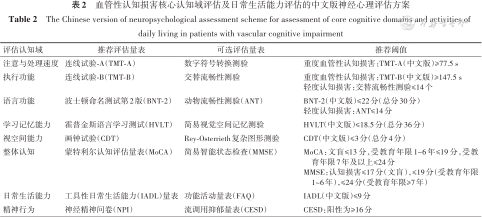 血管性认知损害核心认知域评估及日常生活能力评估的中文版神经心理评估方案