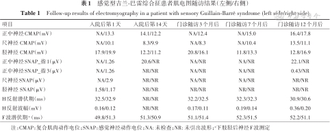 感觉型吉兰-巴雷综合征患者肌电图随访结果(左侧/右侧)